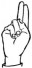 На ћирилици написано ИРЕНА РАДОЈЕВ састоји се из 12 слова [?]. Исписано ћириличном једноручном азбуком за глувонеме:
